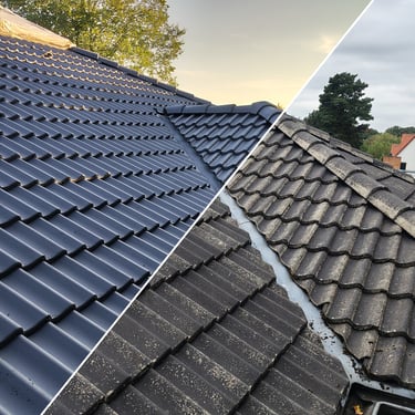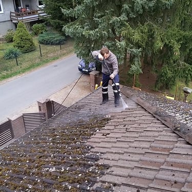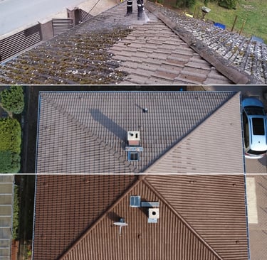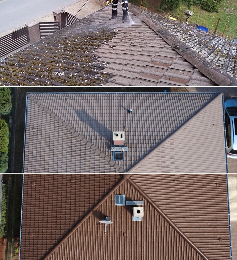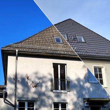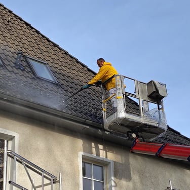 Entfernen von Moos, Algen und VerschmutzungenReinigung der Regenrinnen & Fallrohre